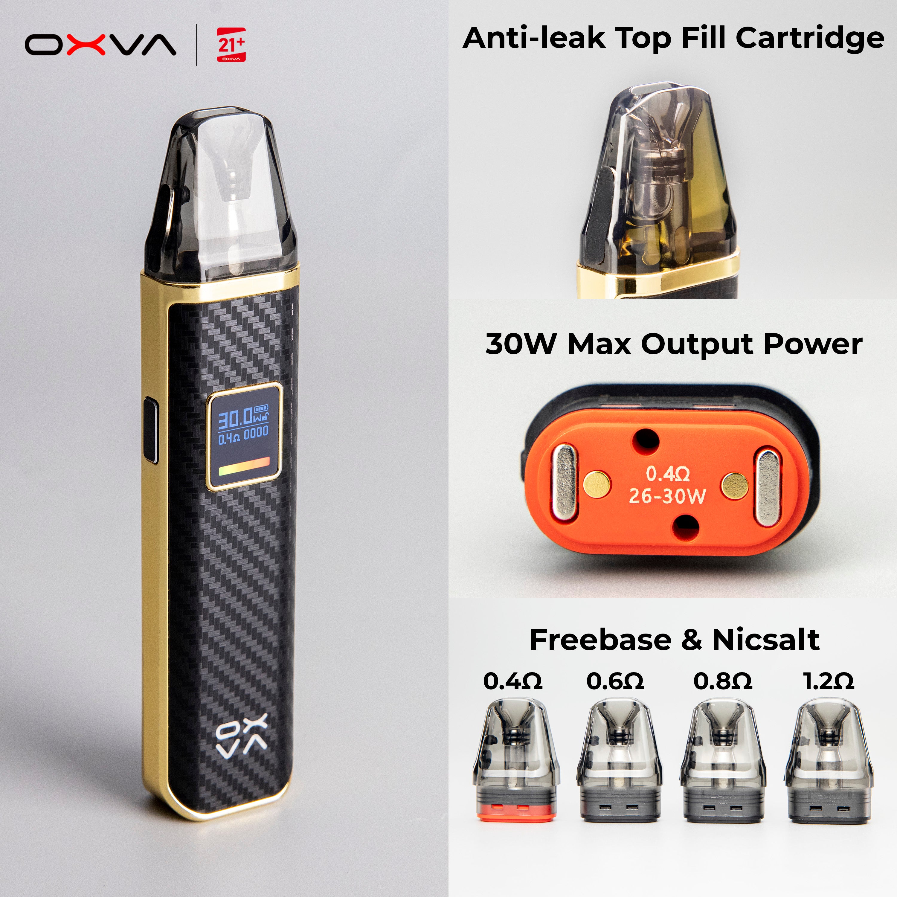 - 2 x OXVA Xlim Pod (0.8Ω, preinstalled, 1.2Ω, spare