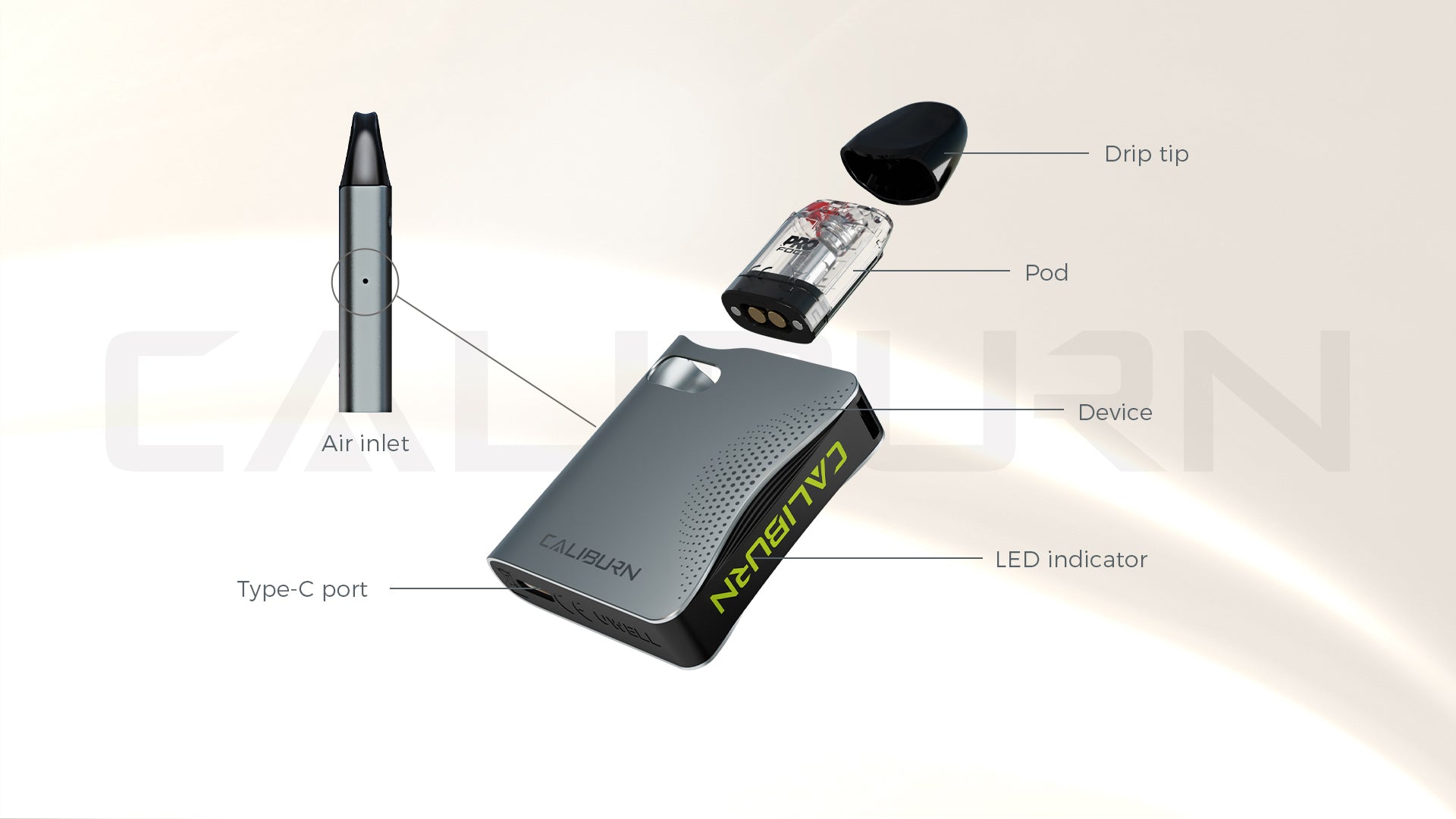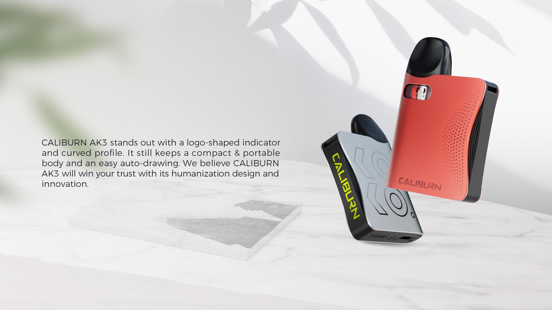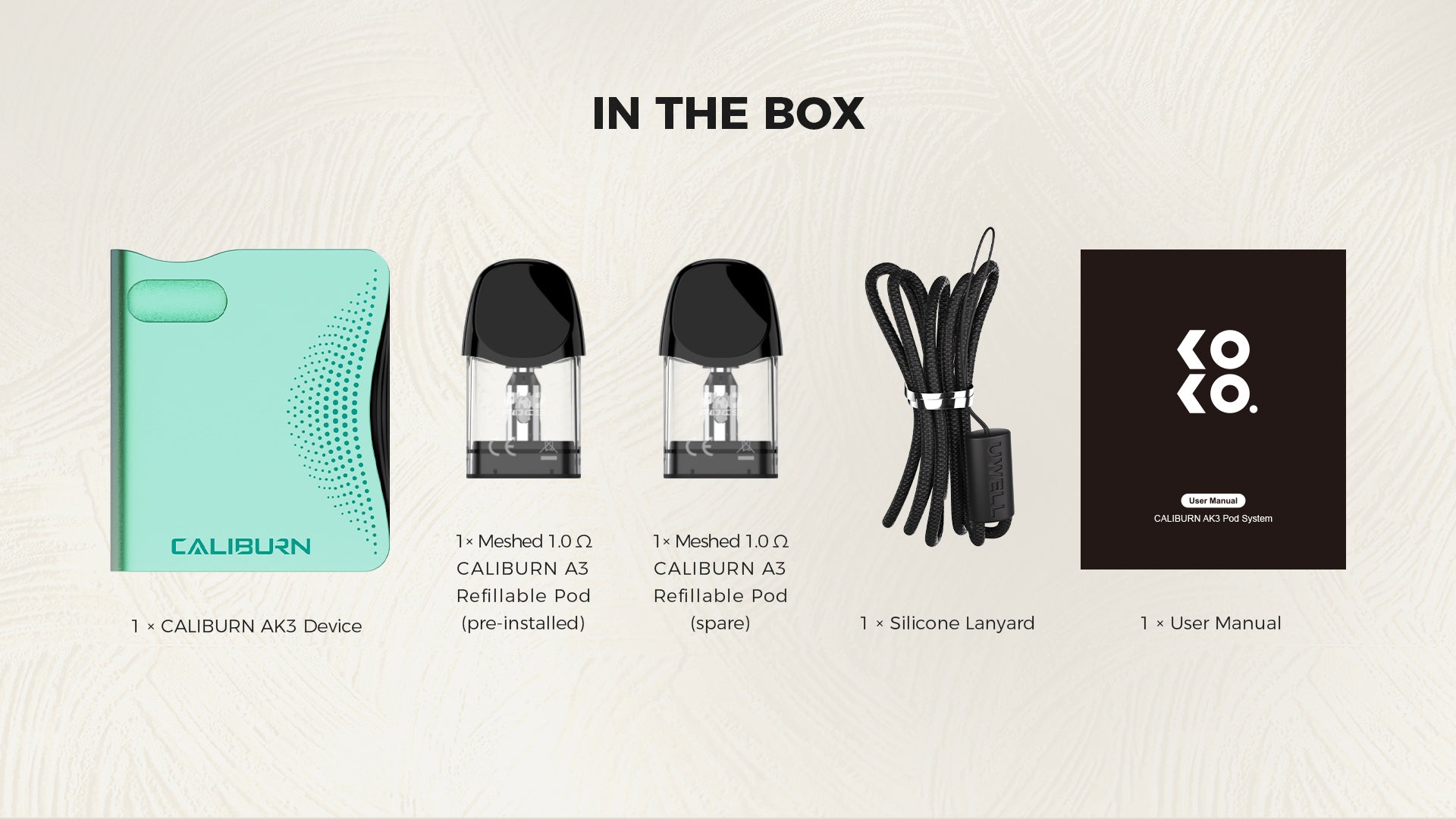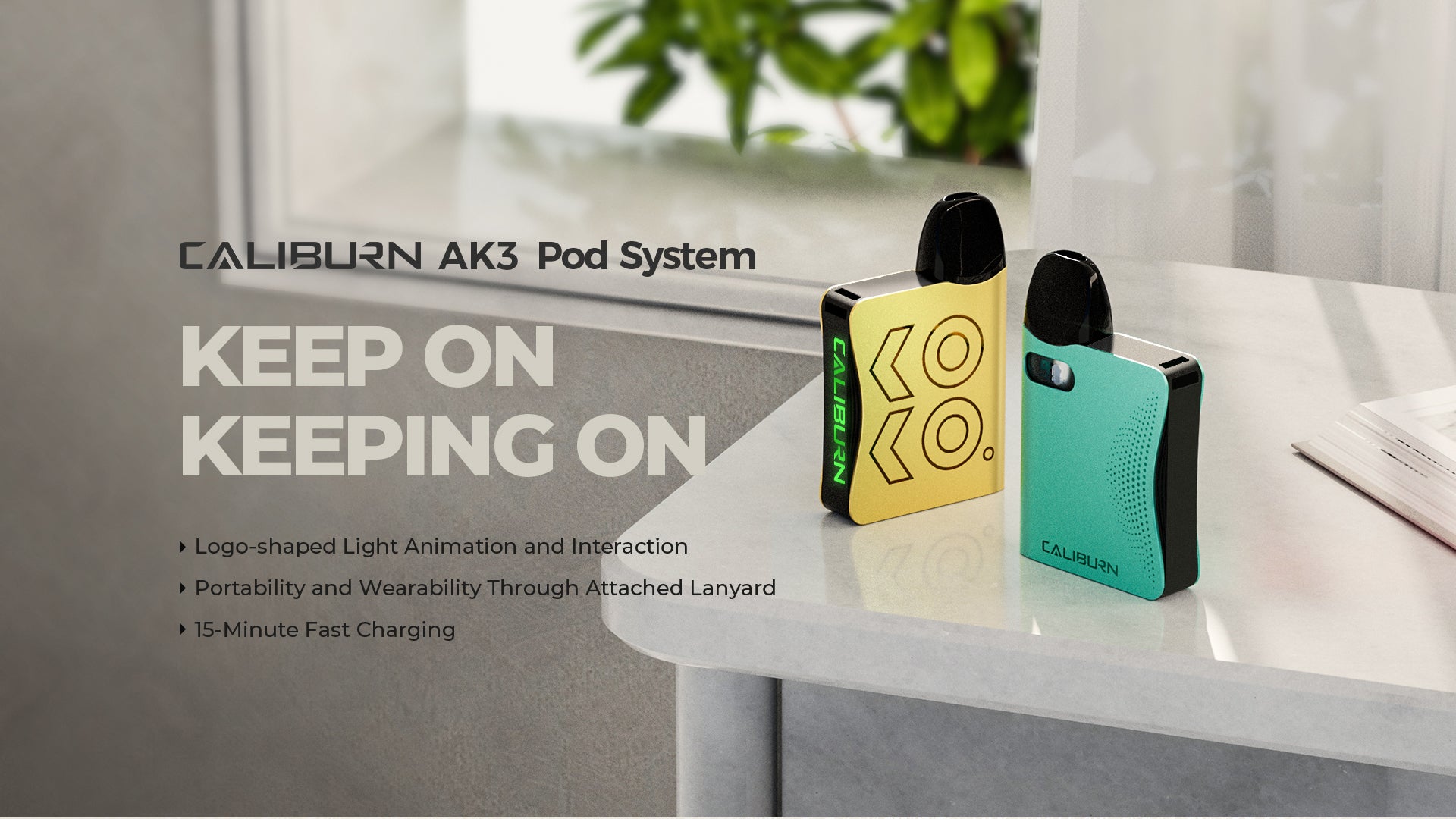 Constructed of lightweight yet durable aluminium alloy, the Caliburn AK3 features a compact chassis with light indicator and lanyard attachment point for enjoyable vaping on the go.