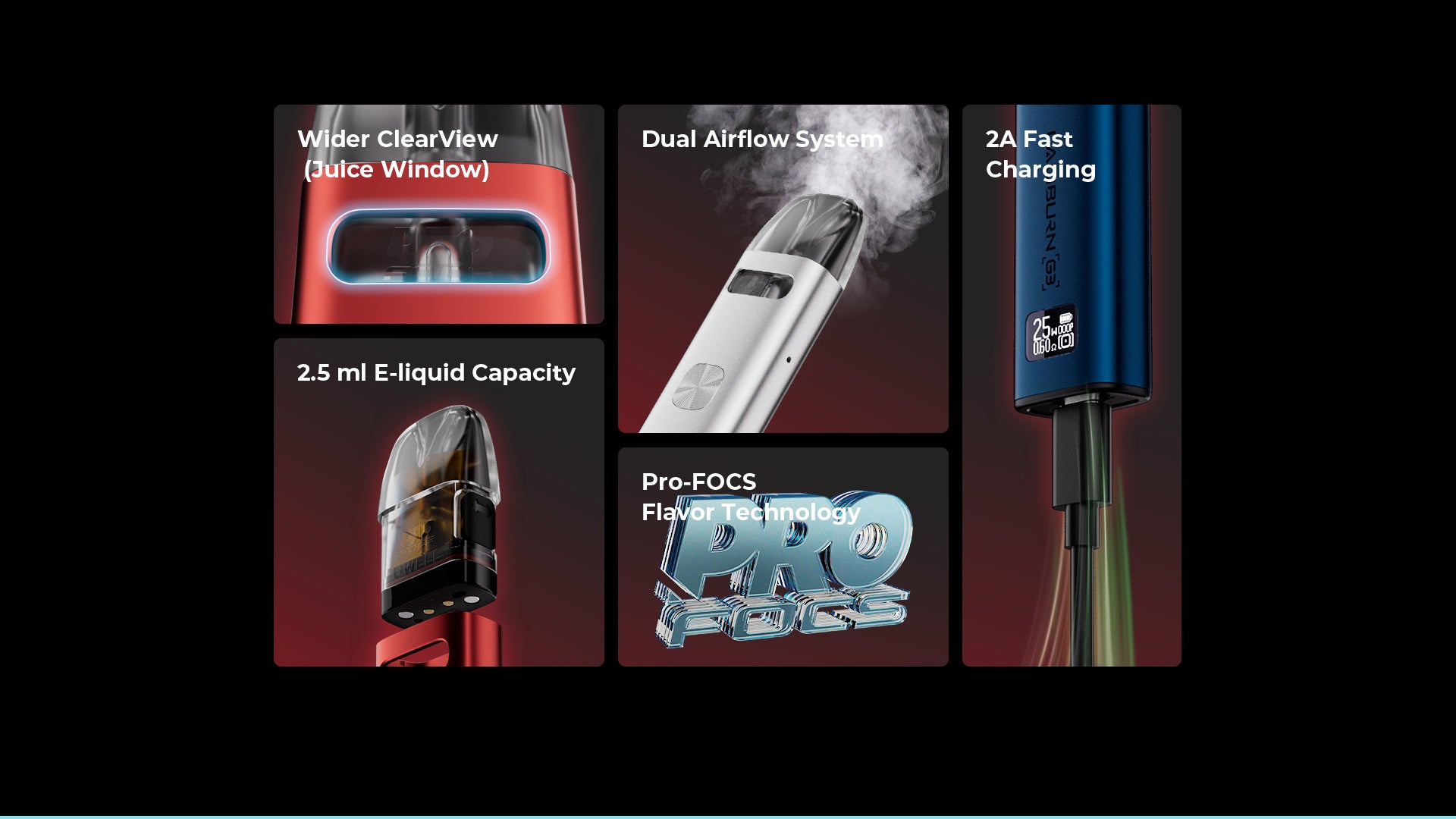 Compatible with Caliburn G3 Replacement Pods available in 0.6Ω, 0.9Ω and 1.2Ω resistances.