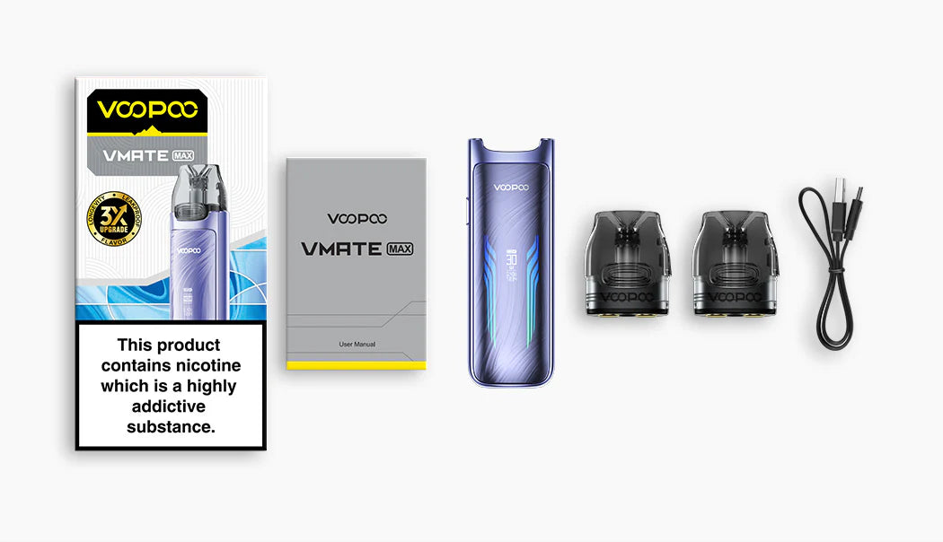 The VooPoo Vmate Max Kit is a top-tier pod system, a GREAT 1200mAh battery and a peak output of 30W. This kit is designed for optimal convenience, with top fill pods for ease of filling. A Crystal clear OLED display makes control so simple and easily visible information.